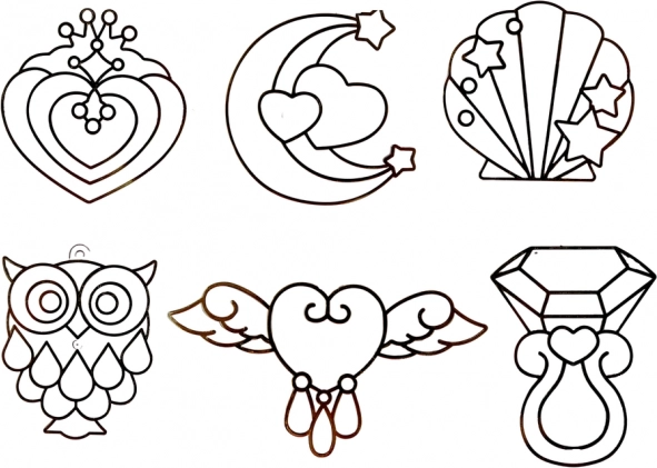 Setul conține 6 pandantive transparente cu forme diferite – grozave pentru realizarea de brelocuri, decorațiuni de fereastră și cheițe.