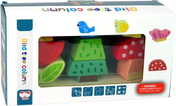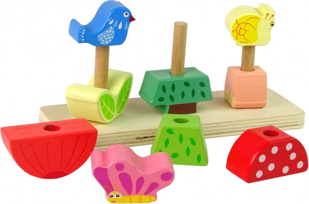 Acest puzzle din lemn este alcătuit dintr-o bază solidă cu trei țăruși, pe care copiii așază piesele din lemn în orice ordine, astfel încât să se potrivească între ele. Piesele ilustrează plante, fluturi și păsări – sarcina este să fie asociate corect cu mediul lor natural, de exemplu fluturele cu floarea sau pasărea cu copacul. Puzzle-ul dezvoltă imaginația și cunoștințele despre natură.