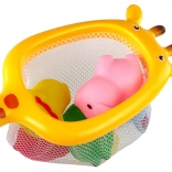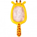 Plasa formă de girafă cu mânere confortabile contribuie la o prindere distractivă a jucăriilor în apă.