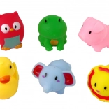 Include șase jucării colorate din cauciuc care oferă distracție copiilor în timpul băii.