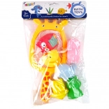 Această set colorat și distractiv este ideal pentru baie nu doar în cadă, ci și în piscina de grădină. Este soluția perfectă pentru părinții al căror copil se teme de apă și nu îi place să facă baie. Datorită jucăriilor colorate în formă de animale, copiii se vor obișnui rapid cu apa. Jucăriile au mici deschideri din care, atunci când sunt apăsate, stropesc apă, ceea ce va distra cu siguranță copiii. Puteți crea un joc în care încercați să prindeți toate jucăriile cu plasa, iar mișcarea apei face jocul și mai captivant.