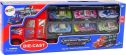 Fiecare copil va adora joaca cu camioanele și mașinile. Acest set include un camion mare, care în remorcă are șase mașini sportive. Vehiculele sunt proiectate cu acuratețe astfel încât să se potrivească confortabil în mâna copilului, iar culorile lor vibrante și autocolantele de curse captează atenția oricărui copil.