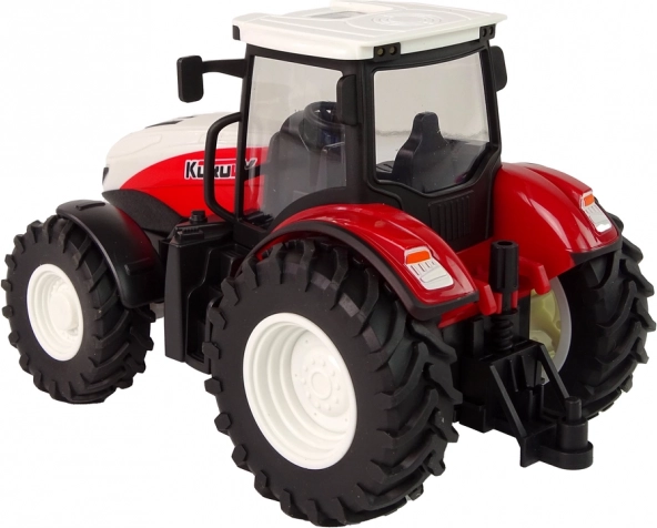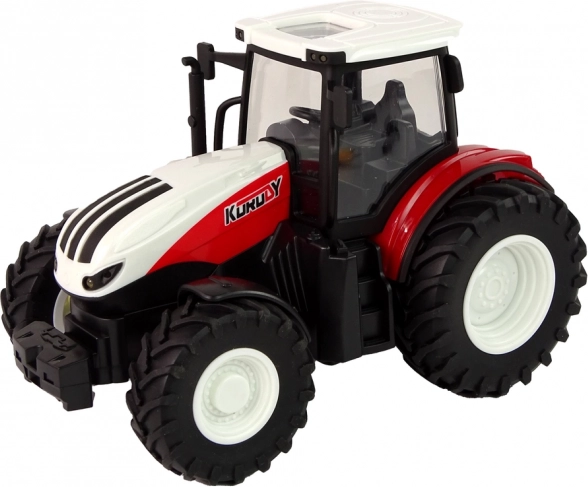 Tractorul la scară 1:24 asigură proporții realiste. Construcția sa durabilă cu caroserie metalică garantează o durată lungă de viață și anvelopele mari de cauciuc oferă aderentă excelentă pe diferite suprafețe. Culoarea roșie cu acoperiș alb atrage atenția.<1end>