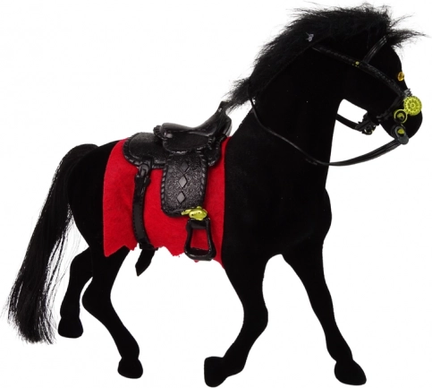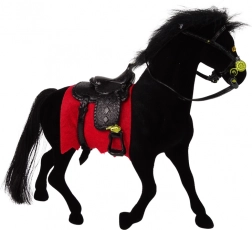 Drăgălașa figurină catifelată de cal negru, cu șa neagră și șabrac roșu, îi va încânta pe micii iubitori de ferme și cai. Este realizată din materiale de calitate, plăcute la atingere, are detalii realiste și o mărime ideală pentru copii de la 3 ani.