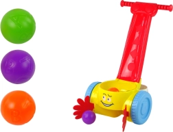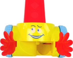 Acest cărucior de împins colorat, cu o față zâmbitoare, îi motivează pe copii la mers și joacă activă. Copilul introduce mingea în orificiul din mâner, jucăria o pune în mișcare, iar mingea sare pe podea – gata pentru a fi strânsă din nou! Jocul dezvoltă în mod natural motricitatea grosieră și fină, coordonarea mână–ochi și rezolvarea sarcinilor simple.