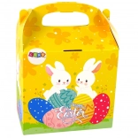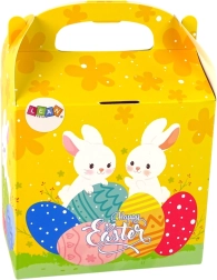 Ambalaj cadou practic cu iepurași și ouă, ușor de transportat datorită mânerului. Cadoul ideal pentru copii de Paște.