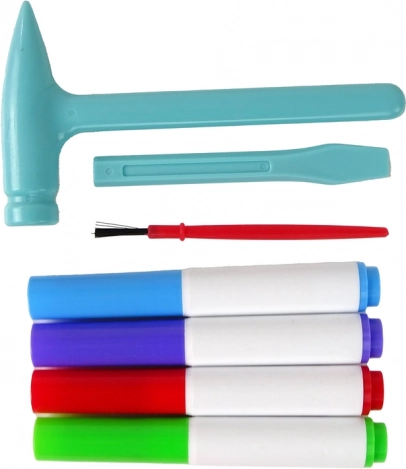Setul conține unelte pentru copii și patru markere în culori diferite pentru creație în siguranță și dezvoltarea imaginației.