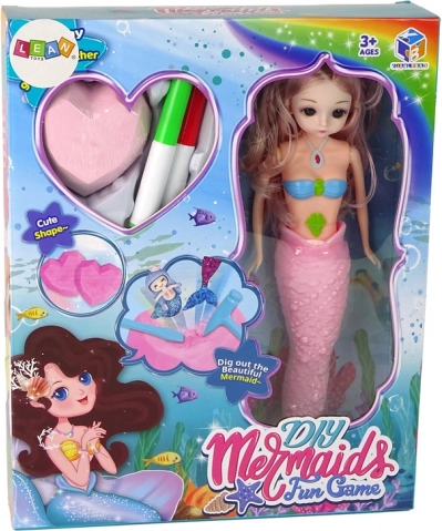 Jucărie creativă pentru copii: sirenă roz cu păr lung, ce poate fi pieptănat și colorat din nou. Include două „pietricele” în formă de inimă cu surpriză, unelte pentru excavare și patru markere colorate. Îmbină creația, pictura și descoperirea de comori într-un singur set distractiv.