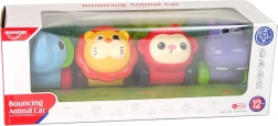 Descoperă un set jucăuș de patru mașinuțe în formă de animale, cu o cupolă transparentă plină cu biluțe colorate care vârtejesc în timpul deplasării. Aceste mașinuțe din plastic rezistent, în formă de elefant, hipopotam, leu și maimuțică, dezvoltă motricitatea fină, coordonarea mișcărilor și susțin percepția senzorială datorită stimulilor vizuali și auditivi. Ideal pentru copii de la 12 luni.