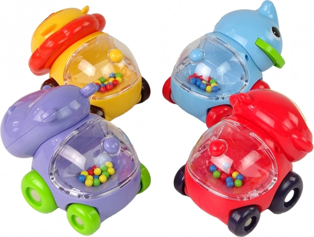 Cu acest set variat de mașinuțe-animale, copiii vor trăi ore întregi de distracție. Biluțele colorate sub cupola transparentă creează, în mișcare, efecte captivante care îi motivează să exploreze și să se joace în continuare. Construcția robustă din plastic de calitate asigură o durată de viață îndelungată și o manipulare sigură pentru cei mici.