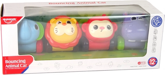 - 4 mașinuțe în formă de animale (elefant, hipopotam, leu, maimuțică)