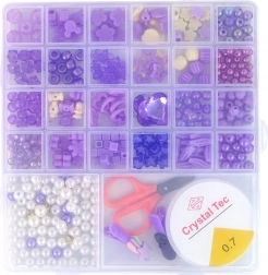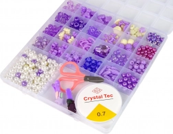Cu acest set uimitor de mărgele poți crea coliere, brățări și inele unice în nuanțe de mov. Distracție și dezvoltare excelente: procesul creativ dezvoltă motricitatea, concentrarea și răbdarea. Datorită organizatorului clar vei avea întotdeauna mărgelele la locul lor și ușor accesibile.