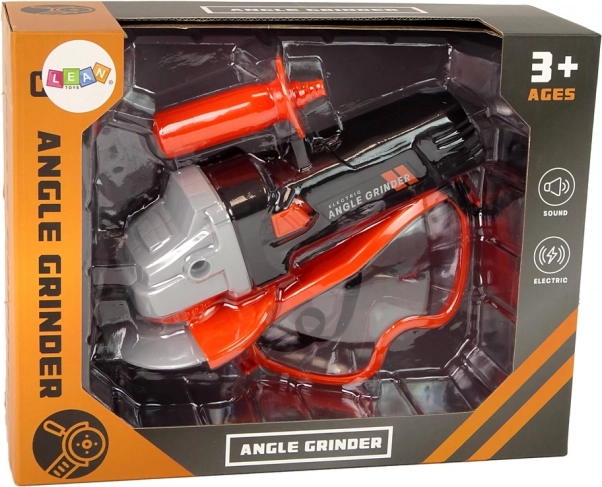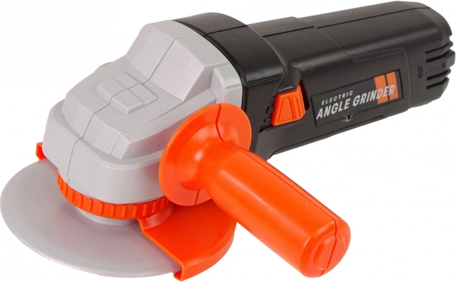 Setul include un polizor cu baterie cu un design autentic negru și portocaliu. La acționarea butonului, discul se rotește la fel ca un polizor adevărat. Pentru siguranța în timpul jocului, sunt disponibili ochelari de protecție.