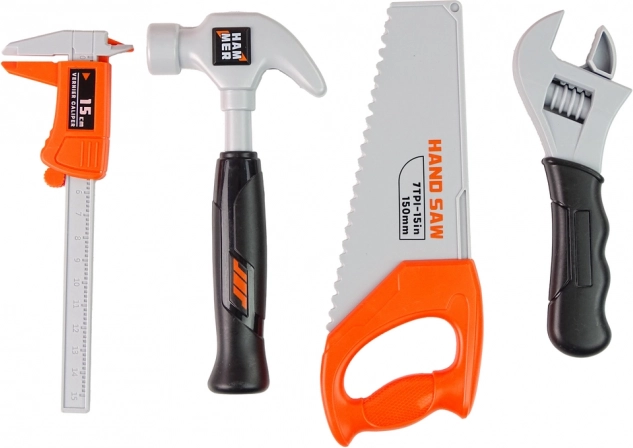 Setul pentru copii include unelte care arată realist, precum ciocan, ferăstrău și bormașină. Fiecare piesă a fost proiectată având în vedere siguranța copiilor și oferă o experiență autentică de joc.