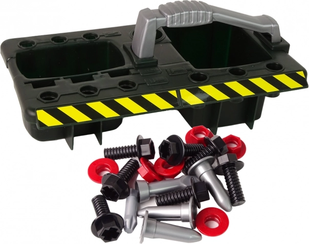 Setul include șuruburi, pânze, chei și alte jucării care oferă oportunități diverse de joacă.