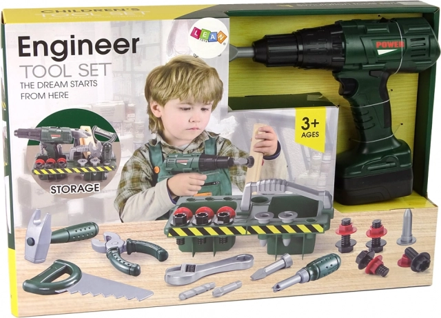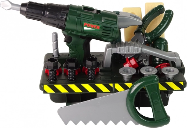 Fiecare unealtă este fabricată din plastic, fiind sigură pentru copii. Bormașina, la apăsarea unui buton, nu doar că învârte burghiul, dar și scoate sunete realiste.