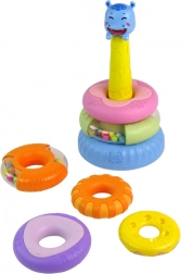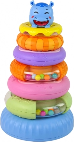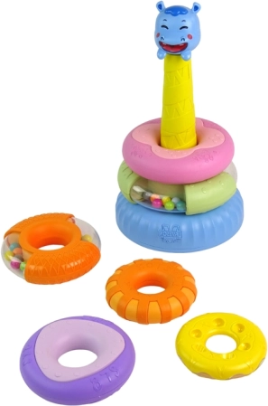 Piramida educațională constă din șase inele colorate care pot fi aranjate unul peste altul în diferite ordine, formând o piramidă. În vârful piramidei se află un hipopotam drăgălaș și zâmbitor. Fiecare inel are o dimensiune și o culoare diferită, ajutând copiii să învețe să distingă culorile, dimensiunile și formele, exersând în același timp coordonarea. În acest fel, jocul dezvoltă și abilitățile cognitive și gândirea logică, esențiale pentru dezvoltarea corectă a copilului dumneavoastră!