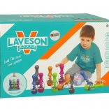 Totul este ambalat într-un conector din plastic, astfel încât popicele pot fi oricând stivuite. Piesele din set au certificat CE, ceea ce înseamnă că sunt jucării sigure pentru cei mici. Jucăria este potrivită pentru copii mai mari de 6 ani.