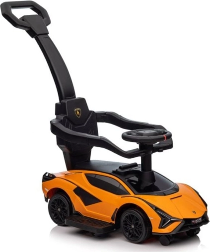 Această trotinetă fără pedale cu împingător în stil LAMBORGHINI îmbină aspectul atrăgător cu practicitatea. Mânerul de împingere cu înălțime confortabilă permite părinților o manevrare ușoară, în timp ce bara de protecție și suportul pentru picioare mențin copilul în confort și siguranță.