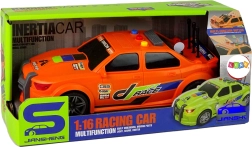 Această mașină de curse stilată, la scara 1:16, le oferă copiilor bucuria condusului și efecte atractive. La apăsarea butoanelor se aud sunetele de pornire ale motorului și melodii, însoțite de lumini care amplifică atmosfera cursei. Datorită mecanismului cu inerție, este suficient să împingi mașinuța, iar ea pornește lin.