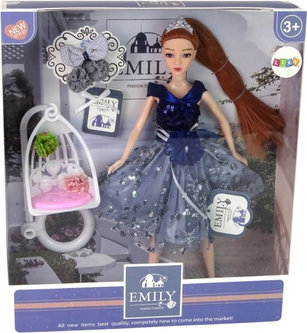 Păpușa Emily aduce o notă de eleganță de basm în camera copilului. Are păr lung, frumos coafat, o rochie albastră sclipitoare cu detalii cu paiete și pe cap o tiară fin strălucitoare. Pachetul este conceput pentru joacă fantezistă și narativă, care dezvoltă creativitatea și motricitatea fină.