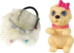 În pachet se află un cățeluș mic bej cu fundiță și un elastic de păr decorat, care completează scenariile de joacă și transformările de styling. Setul este excelent pentru dezvoltarea motricității fine, a jocurilor de rol și a poveștilor imaginative.