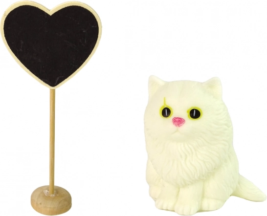 - Păpușa Emily, pisoiaș alb cu sunet, inimă din lemn pe suport