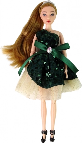 Dați farmec jocului copiilor cu păpușa Emily – o păpușă elegantă cu păr blond lung, tiară aurie și rochie cu paiete verzi. Membrelor mobile le permite poziționarea naturală și punerea ușoară în scenă a defilărilor de modă și a poveștilor.