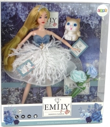 Aduceți în camera copiilor farmecul fanteziei cu păpușa EMILY. Datorită rochiei bogat decorate, părului lung ce poate fi pieptănat și accesoriilor fermecătoare, copiii își pot crea ușor propriile povești de modă. Setul cu pisoiaș și flori extinde posibilitățile de joacă și stimulează imaginația.