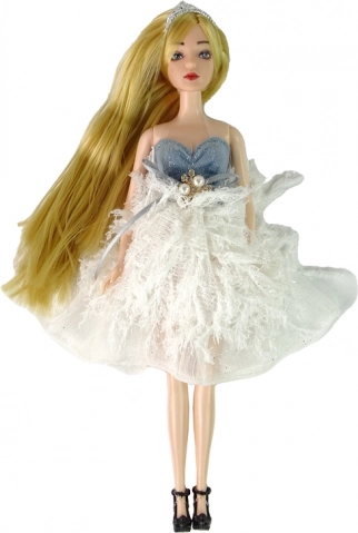 Rochie alb-albastră sclipitoare, cu dantelă și detalii cu perluțe, completată de o tiară și pantofi la modă, o transformă pe EMILY într-o mică prințesă.