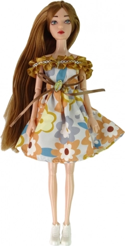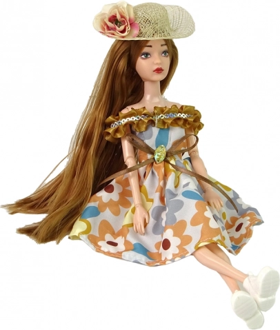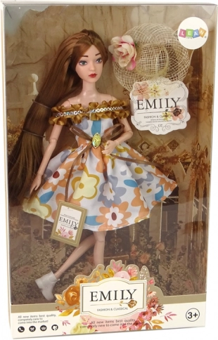 Descoperă farmecul toamnei cu păpușa Emily – partenera stilată pentru joaca de zi cu zi și pentru expunere. Părul lung, șaten, invită la învățarea împletiturilor și coafurilor, iar rochia fină, florală, cu fundă și pietricică strălucitoare îi dă păpușii un plus de șarm. Pălăria bej cu floare completează frumos întreaga ținută.