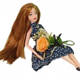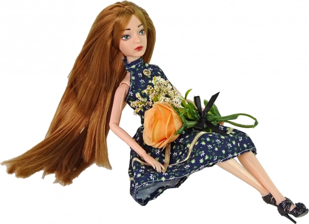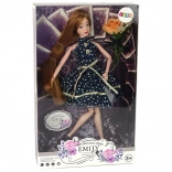 Emily are păr lung, frumos aranjat, poartă o rochie florală elegantă și pantofi negri cu toc. În pachet vei găsi și o roză decorativă, care completează ținuta pentru prezentarea de modă.