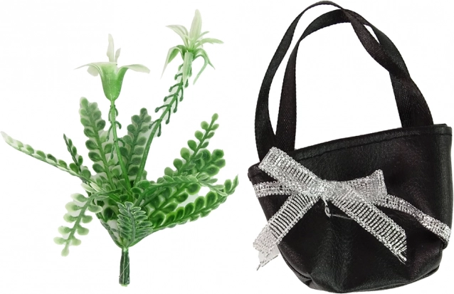 Setul include o poșetă neagră stilată și accesorii florale care completează ținuta. Materialele de calitate și execuția atentă garantează un joc sigur și plăcut. Produsul respectă standardul EN71 și are marcaj CE, fiind potrivit pentru copii de la 3 ani.