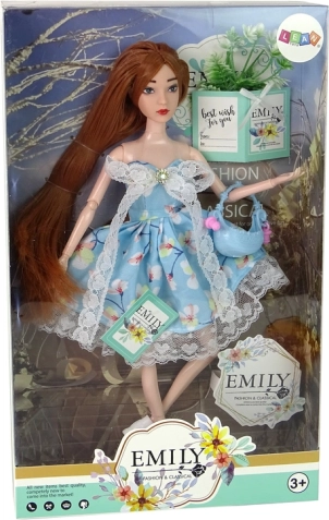 Păpușa Emily aduce în joc o atmosferă proaspătă de primăvară. Părul lung roșcat este perfect pentru învățarea împletiturilor și coafuri creative, în timp ce ochii verzi oferă păpușii un farmec aparte. Rochia albastră cu imprimeu floral delicat, dantelă în formă de inimioare și o fundiță drăguță îi completează stilul. Adidașii albi adaugă o notă lejeră pentru orice aventură.