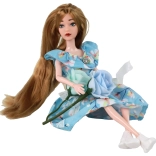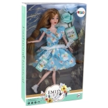 Păpușa Emily (30 × 7 × 4 cm) este însoțitoarea ideală pentru joaca de zi cu zi. Părul lung, nuanță blond închis, poate fi ușor pieptănat și decorat, astfel încât copiii pot crea nenumărate coafuri. Rochia albastră cu model floral este decorată cu o fundiță din dantelă și un mic detaliu „diamant” la decolteu, care oferă păpușii un aspect elegant.