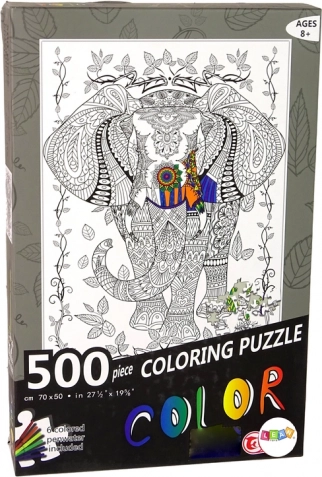 Scufundați-vă în lumea distracției creative cu 500 de piese de puzzle alb-negru și 6 markere pentru a le colora. Asamblați imaginea elefantului înconjurat de frunze și expuneți-o cu mândrie ca decor de perete sau suport pentru masă.
