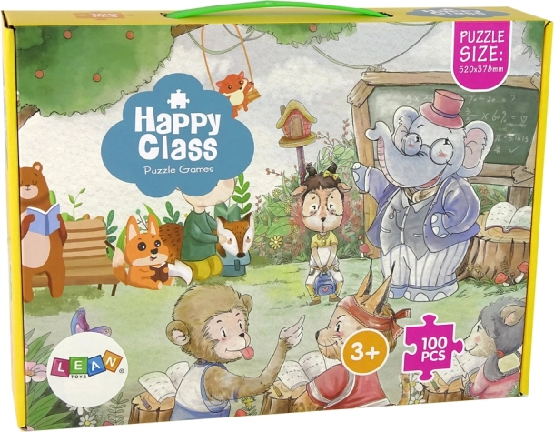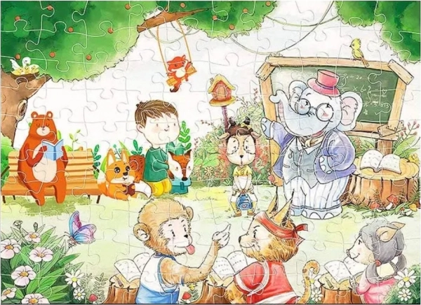 Puzzle-urile Școala Animalelor de 100 de piese oferă o priveliște uimitoare în lumea animalelor, unde un elefant profesor are grijă de animale ca pe proprii săi elevi. Această grafică educativă cu dimensiuni de 52 cm x 37,8 cm va ajuta copiii să dezvolte abilitățile cognitive și creativitatea în timp ce explorează mediul animalelor.