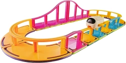 Descoperă lumea creativă a construcțiilor cu cuburi magnetice și creează-ți propria pistă suspendată de curse cu 29 de piese. Plăcuțele și componentele magnetice colorate se îmbină ușor, susținând motricitatea fină, coordonarea și imaginația copiilor. Setul include un mini-avion care zboară înainte pe traseul asamblat, precum și o carte cu idei pentru a porni rapid jocul creativ.