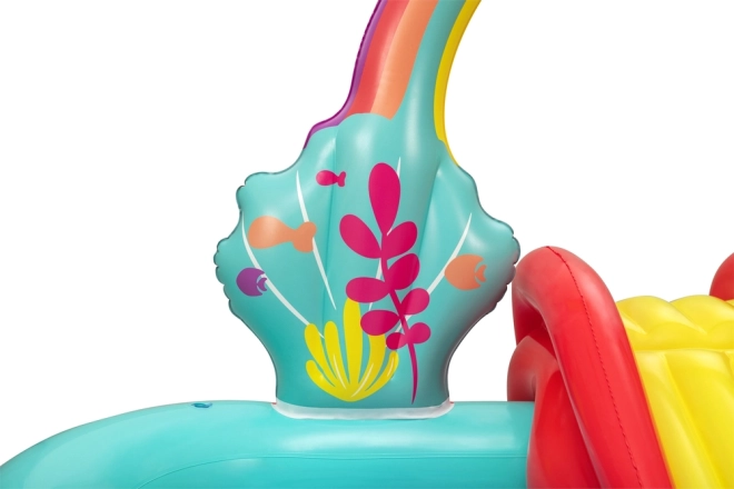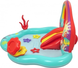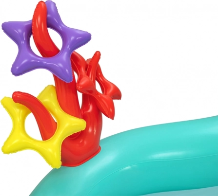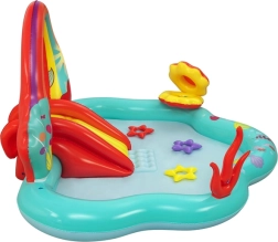 Terenul de joacă acvatic gonflabil Bestway Mica Sirenă aduce în grădina dvs. o lume vrăjită din basm. Fabricat din PVC durabil, acest teren de joacă cu dimensiunile de 221 cm x 193 cm x 117 cm oferă multă distracție și imaginație pentru copii de la 2 ani în sus. Copiii se vor bucura de un tobogan terminat cu o pernă moale și de o fântână de apă care poate fi activată prin conectarea unui furtun de grădină.
