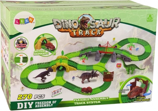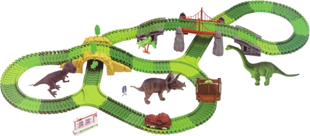 Scufundă-te în lumea dinozaurilor cu această pistă uimitoare, care constă în piese de traseu simple, care pot fi ușor conectate pentru a crea diverse rute pentru dinozauri. Setul include figurine colorate și realiste ale acestor creaturi uimitoare și accesorii precum copaci și plante pentru a crea un scenariu autentic.