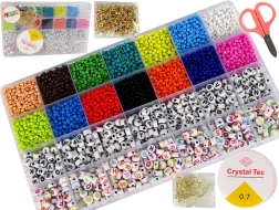 Setul conține tot ce aveți nevoie pentru realizarea bijuteriilor. Organizatorul mare include până la 14 culori diferite de mărgele și litere, din care se pot forma diverse cuvinte, de exemplu un colier cu numele unui prieten sau al unei prietene. Fiecare își va găsi preferatul!