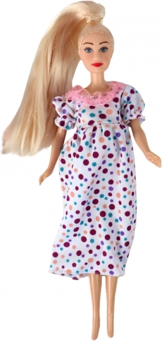 Păpușa Lucy este o jucărie frumos elaborată, cu păr lung și strălucitor blond, care poate fi pieptănat și coafat. Fața delicat pictată oferă păpușii un aspect realist, amplificându-i farmecul. Este îmbrăcată într-o rochie de gravidă albă cu buline colorate.
