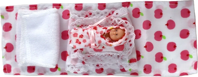 În afară de păpușa Lucy și îmbrăcămintea sa, setul include și un copil mai mare cu păr castaniu și o rochiță roșie drăguță cu buline albe. Acest set oferă un element fascinant de îngrijire și dezvoltare a imaginației copiilor prin simularea îngrijirii maternale.