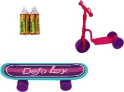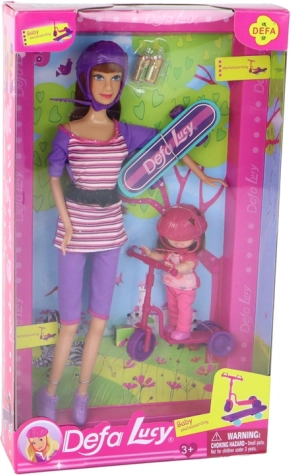 Vă prezentăm setul de păpuși care aduce experiențe creative și interactive pentru copii. Această colecție colorată include două păpuși, una mai mare cu cască mov și una mai mică, copil cu cască roz. Un accesoriu grozav pentru aceste păpuși este trotineta roz și skateboard-ul turcoaz. Copiii se pot bucura de ore de distracție creând povești și scenarii unice.