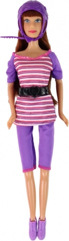 Setul include două păpuși. Una dintre păpușile mai mari poartă o cască mov, în timp ce păpușa mai mică are o cască roz adorabilă.