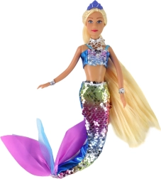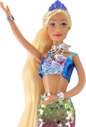 Păpușa noastră este o adevărată poveste despre frumusețe și magie, care va încânta atât micii, cât și marii iubitori de povești de basm. Coada sa solzoasă este excepțională datorită structurii sale pe două fețe și paietelor colorate spectaculoase. Trăgând cu mâna peste paiete, își schimbă culoarea în argintiu, amintind de solzii frumoși ai unei adevărate sirene.