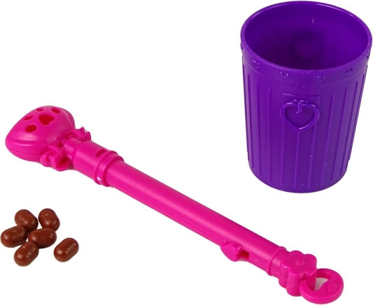- Păpușă, cățel, lesă roz, coș de gunoi, bol cu hrană, lopățică