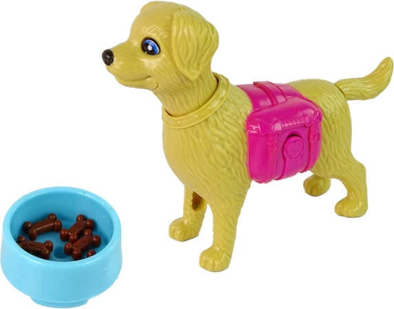 Cu acest set, copiii se vor cufunda în lumea imaginației și a îngrijirii unui animăluț de companie. Cățelul interactiv poate fi hrănit cu granule din bol în mod repetat, iar datorită cozii, urechilor și botului mobile jocul pare natural și distractiv. Păpușa cu păr blond lung are brațe și picioare articulate, astfel că adoptă cu ușurință poziții realiste la hrănire, plimbare și alint.