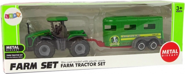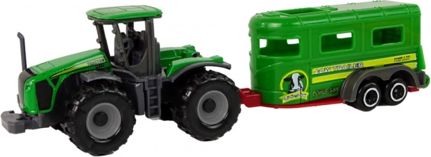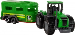 Acest set combină un tractor verde și o remorcă asortată pentru aventuri la fermă acasă sau în deplasare. Dimensiunile compacte se potrivesc perfect în mâinile copiilor și sprijină dezvoltarea imaginației și a motricității fine. Datorită construcției solide din plastic, jucăria este rezistentă la utilizarea zilnică.