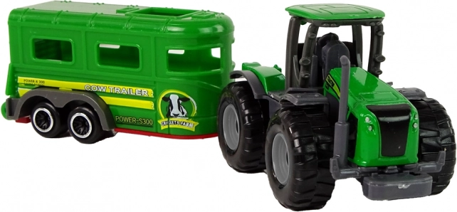 Tractorul are dimensiunile 8 × 4,5 × 4 cm, iar remorca 9 × 4 × 3 cm. Întregul ansamblu măsoară 17 × 4,5 × 4 cm și este ambalat într-o cutie de 21 × 7,5 × 5 cm. Jucăria respectă CE și standardul EN71 și este potrivită pentru copii de la 3 ani.